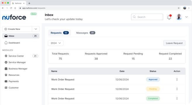 Central service menu and work order tracking so you can keep track of your busy schedule